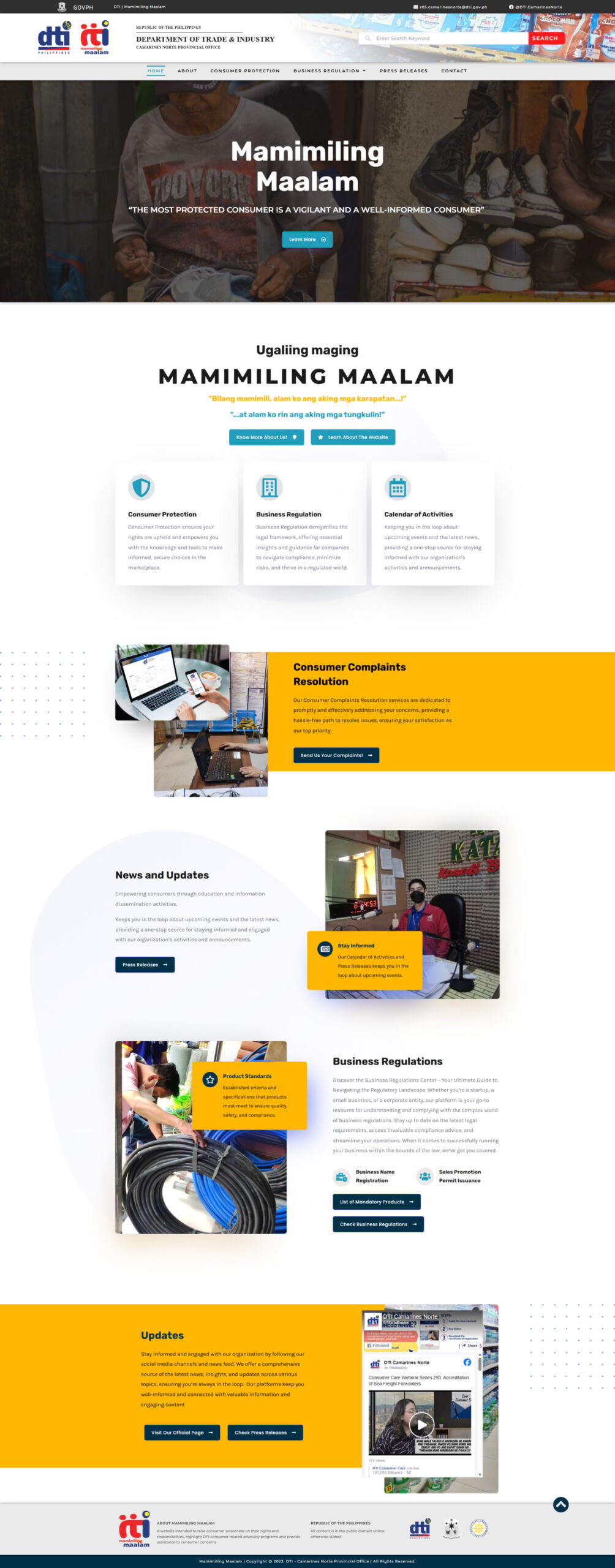 Mamimiling Maalam is a public-facing digital initiative by the Philippine Department of Trade and Industry (DTI) — Camarines Norte Provincial Office. Its primary mission? To empower consumers by equipping them with knowledge of their rights and responsibilities. The site offers comprehensive features such as consumer protection information, business regulation guidance, complaint resolution tools, news, and event calendars